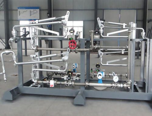 油品定量裝車橇裝組是指將每一個(gè)裝車鶴位內(nèi)的儀表和設(shè)備集成在一個(gè)專用的框架結(jié)構(gòu)內(nèi),儀表和設(shè)備包括裝車鶴管、流量計(jì)、防溢油靜電報(bào)警控制器、壓力變送器、裝車流量控制閥、緊急切斷閥,裝車泵、批量控制器等, 只預(yù)留工藝連接口和控制電源和通訊接口,這個(gè)整體集成部分稱為裝車橇。與傳統(tǒng)的裝車控制系統(tǒng)就地組裝比較,裝車橇可以節(jié)省現(xiàn)場設(shè)計(jì)和現(xiàn)場施工量,縮短項(xiàng)目工期,提高裝車控制系統(tǒng)的質(zhì)量。